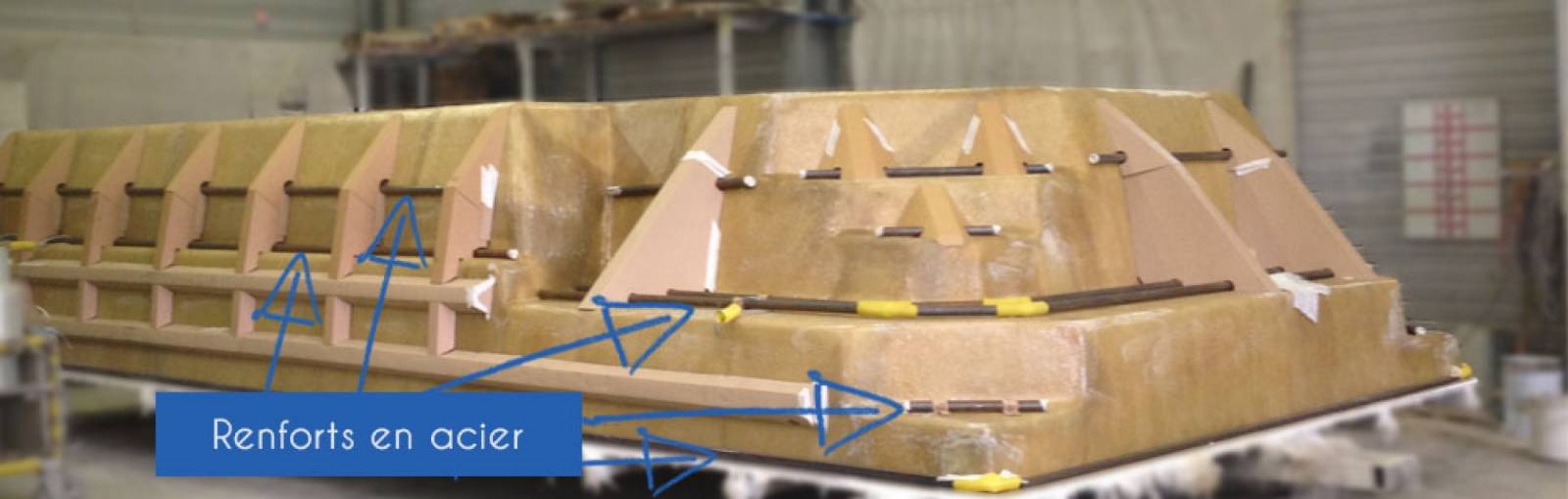 Notre laboratoire technique a retenu comme procès de fabrication la superposition des couches de fibres. Celles-ci sont appliquées en moulage contact et offrent une résistance mécanique optimale du combiné composite garantissant la tenue parfaite et de longue durée de nos produits. Les renforts structurels U-Type aeronautique élaborés par notre bureau d’étude spécifiquement pour chacun de nos modèles, auxquels s’ajoutent des armatures métalliques, assurent un compromis idéal entre souplesse et rigidité. La projection simultanée de résine et de fibre de verre finalise la liaison de la structure et des renforts préalablement appliqués sur le bassin. Le respect rigoureux de l’ensemble de ce process de fabrication, formant la norme MATIP, a permis au groupe ALLIANCE PISCINES d’obtenir et de conserver son assurance décennale par capitalisation. Nous testons et éprouvons également en chambre de vieillissement accéléré tous nos revêtements afin de les juger à 10 ans dans des conditions extrêmes d'utilisation.