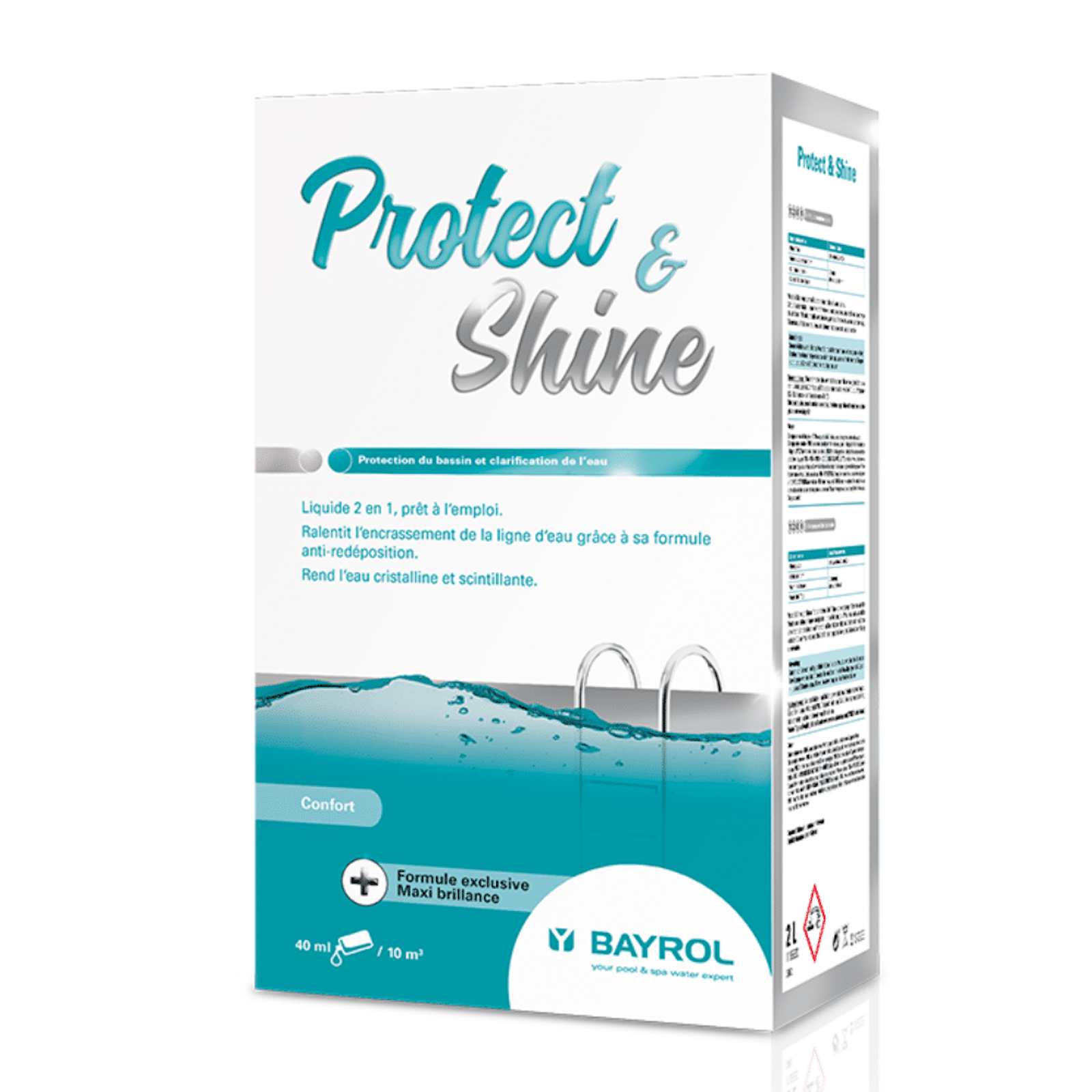 Avec l’usage régulier, la ligne d’eau et les skimmers d’une piscine sont souvent exposés aux dépôts gras et aux traces de pollution. Pour préserver un bassin propre et une eau éclatante, le Protect & Shine Bayrol est un produit 2-en-1 innovant, facile à utiliser et compatible avec toutes les piscines.