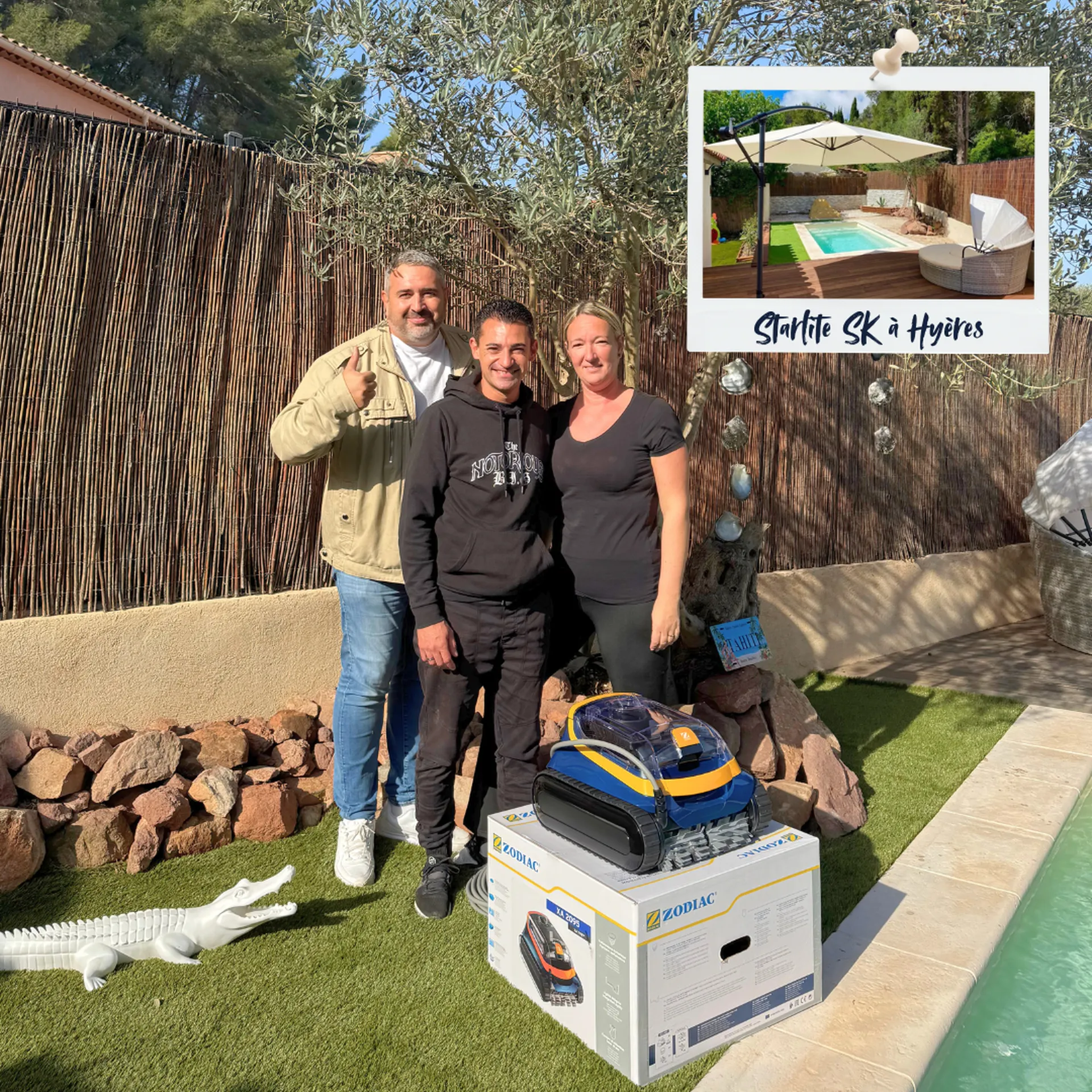 Les voilà maintenant équipés comme il se doit pour entretenir leur piscine Starlite SK à Hyères !
