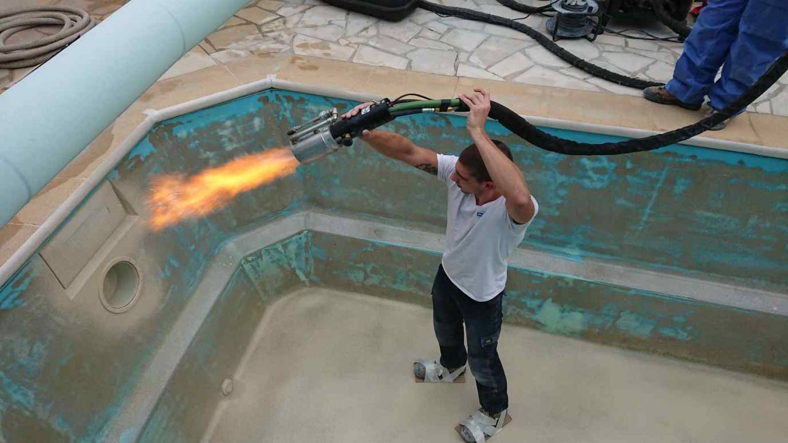 Grâce à notre procédé innovant Blue Flame, nous projetons à chaud une résine de finition haut de gamme, offrant un rendu neuf, lisse et durable.