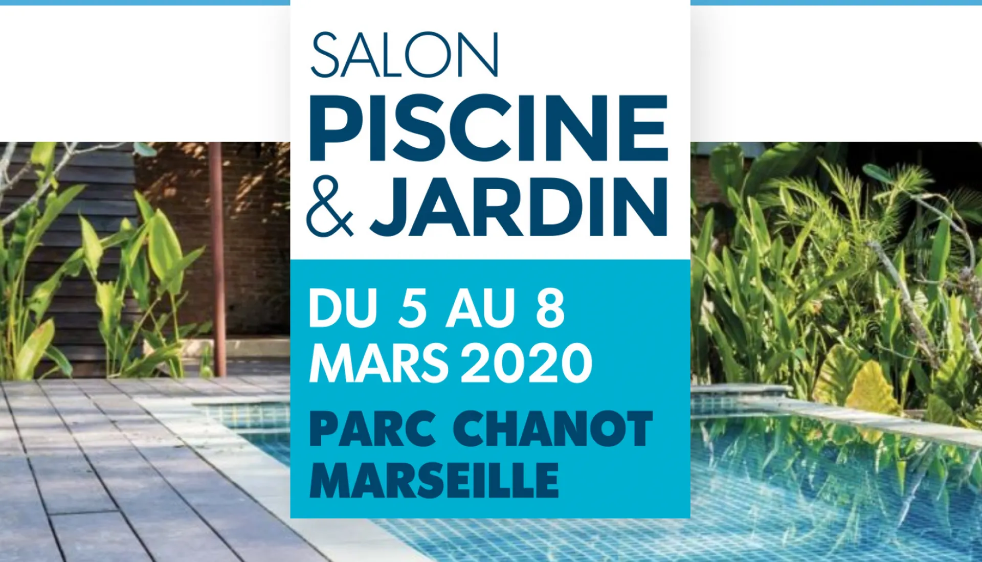 Nous avons le plaisir de vous annoncer notre participation au Salon Piscine et Jardin qui se tiendra au Parc Chanot, du 5 au 8 mars 2020, dans le Hall 3. Cet événement incontournable pour les passionnés de piscines et d'aménagements extérieurs sera l'occasion parfaite de découvrir nos dernières innovations et de discuter de votre projet piscine avec nos experts.